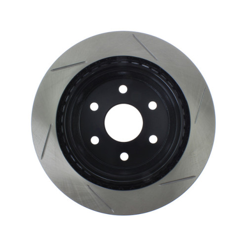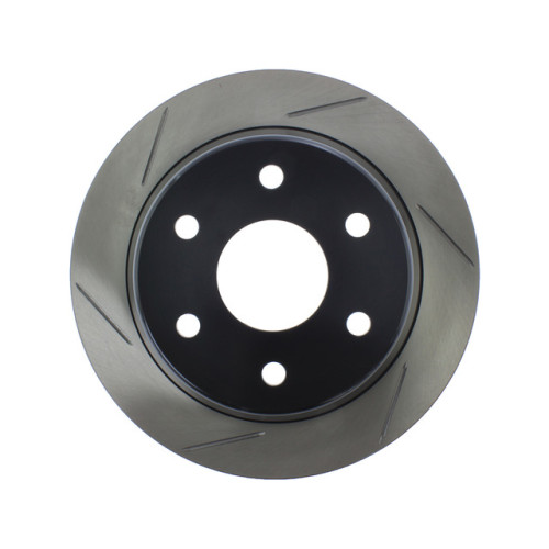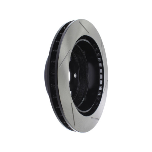 Cryo-Treated Slotted rotors by StopTech are by far the smartest brake disc choice if you're racing, towing, hauling, fleet driving or running over-sized wheels and tires that are taller or heavier than stock. All those conditions create massive heat, and this is THE highest quality brake rotor choice you have without having to move up to a 2-piece brake rotor solution. This is it, this is the top and provides the quickest stop. The slotted rotor provides the best brake pad bite and stopping power of any other rotor design.