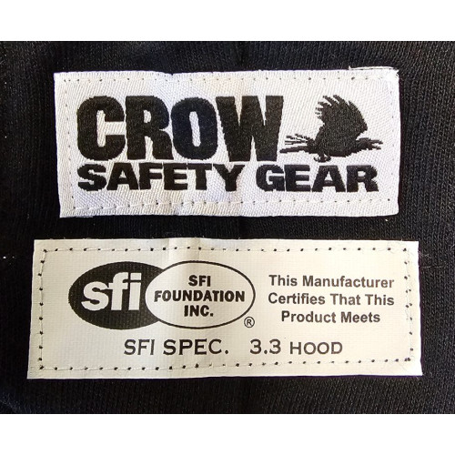 Crow Flame Retardant SFI 3.3 Head Sock. Crow has been manufacturing racing underwear for decades. The White fire-retardant material was very effective but quickly showed dirt and sweat stains. New technology and materials now allow SFI 3.3 certified underwear protection in Black coloring. An SFI Certified head sock or balaclava adds an additional layer of protection against flame and extreme heat. Crow's single layer, single eye port head sock is constructed from a soft, comfortable fabric comprised of 40% cotton and 60% modacrylic.