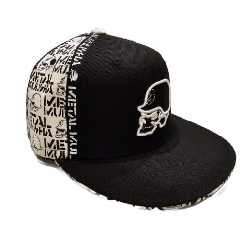 The Metal Mulisha Mason Flex Cap in Black features a medium size Metal Mulisha embroidery on the front panel in White with Metal Mulisha branded White back panel and underbill.