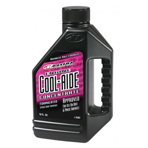 Maxima Engine Cool-Aide is formulated to reduce engine temperatures and provides significantly better contact on heated surfaces allowing for greater and more efficient heat transfer. Cool-Aide comes in a powerful 16oz concentrate. Cool-Aide mixes with water and antifreeze. Cool-Aide is for race use and does not offer freeze protection. Approved for race use on paved surfaces.